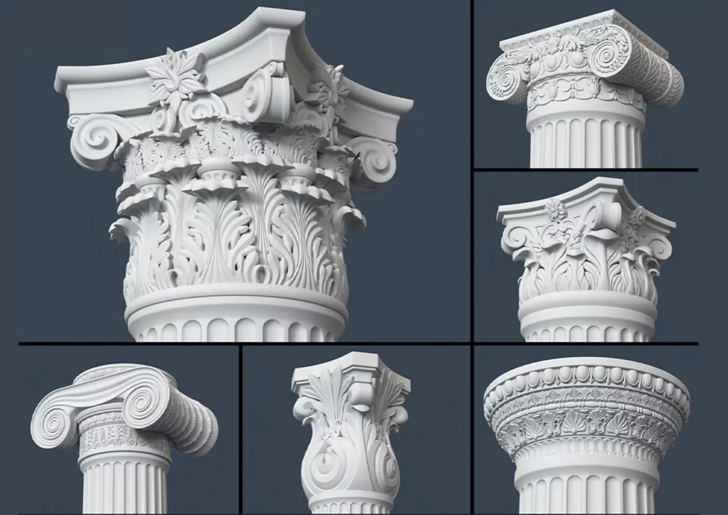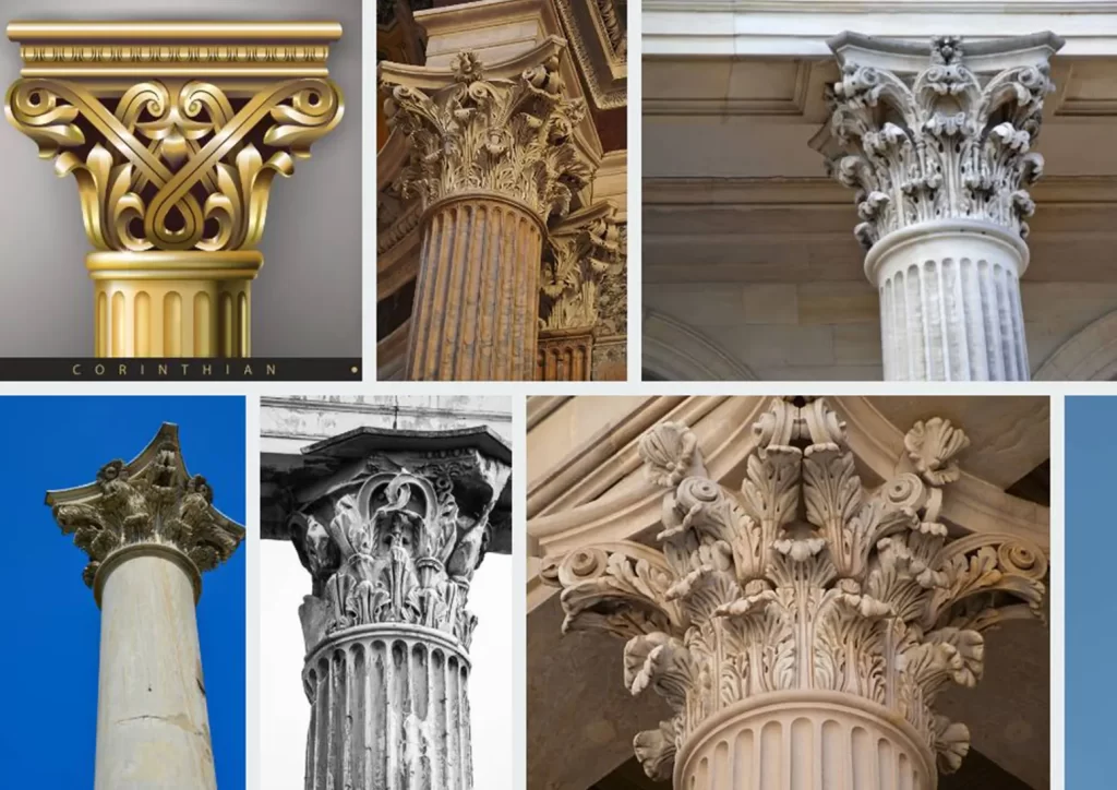 Corinthian: tráng lệ, cầu kỳ, biểu tượng của sự xa hoa và thẩm mỹ cao cấp.